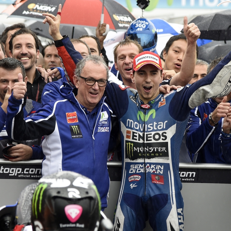 Ma proprio per questa stessa ragione Jorge Lorenzo è stato grande. La decisione di rientrare era difficile da prendere e il muretto non poteva in nessun modo aiutare, spetta al pilota valutare le condizioni della pista. Il 99 ha tirato fuori carattere e personalità. Ha ragionato bene e in fretta. Ha avuto anche fortuna, quella ci vuole. Ha capito che più forte di così con la pista umida non avrebbe potuto spingere, ha valutato che l’azzardo fosse quello di chi insisteva a star fuori con le slick, non ha avuto paura di perdere. Perché è chiaro che se la pioggia fosse cessata lui sarebbe arrivato molto indietro. “Roba d'altri tempi”, mi sono detto, ma subito dopo mi sono chiesto: perché d'altri tempi? Ci ho messo un po' a capire: ho fatto in tempo a vedere il rientro di Jorge a quasi 24 secondi da Marc, le cadute di Pedrosa prima e di Marquez poi, e la volata micidiale tra Aleix Espargaro e Cal Crutchlow per il secondo posto...