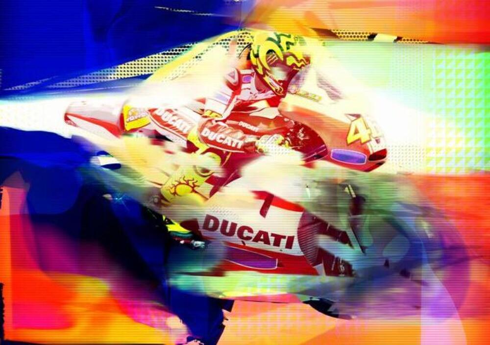 Ducati e Cultwork, licenziatario ufficiale per il mondo dell’arte grafica, annunciano una nuova ed esclusiva collezione d’arte, sempre dedicata al mondo Ducati ma ora declinata sul nove volte Campione del Mondo in Moto GP Valentino Rossi. Con queste nuove proposte artistiche, che si aggiungono ad una già ricca e prestigiosa collezione dedicata alla casa motociclistica di Borgo Panigale, Cultwork vuole celebrare con le immagini il fuoriclasse pesarese che quest’anno ha messo il mitico numero 46 sulla Desmosedici GP.