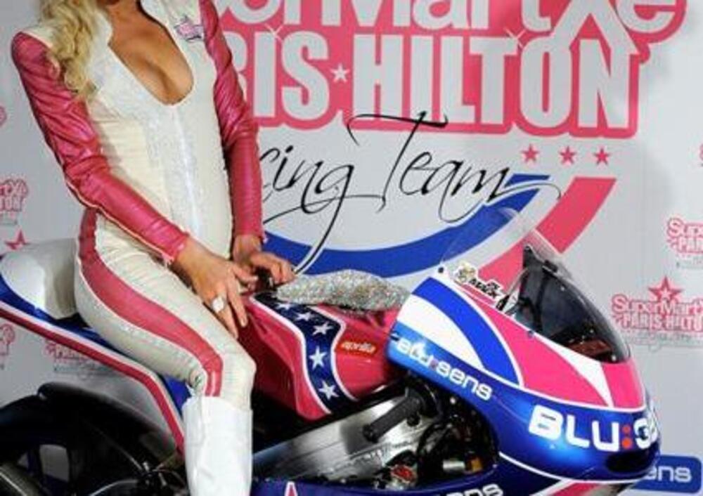 Passati in secondo piano i duei piloti Sergio Gadea e Maverick Vinales, la vera protagonista è stata l’ereditiera Paris Hilton, che ha intrattenuto i media e la stampa posando per qualche scatto accanto all’Aprilia RSA 125 con la colorazione ufficiale rosa, bianca e blu.
