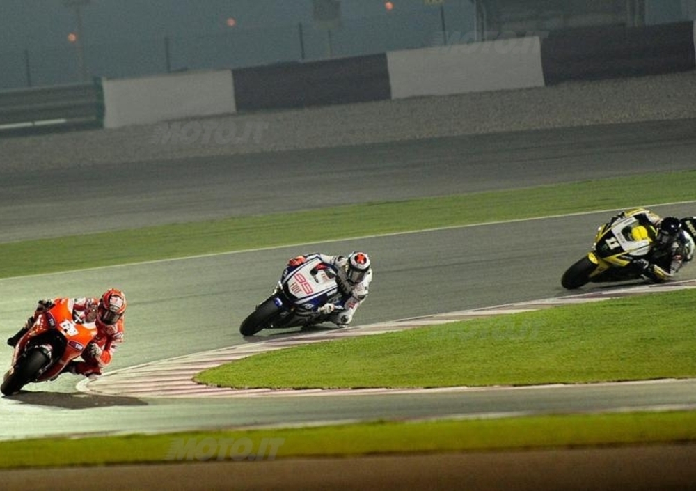 Dopo sei, lunghissimi mesi, l’astinenza finalmente è finita: domenica 11 aprile il Motomondiale torna in pista in Qatar, ormai da qualche anno appuntamento inaugurale della stagione. In mezzo al deserto si corre con le luci artificiali, secondo una richiesta degli emiri arabi, che sborsano parecchi milioni di dollari alla Dorna perché la gara si svolga di notte. Un evento sicuramente spettacolare, ma pieno di rischi e che piace poco ai piloti: nel 2009 la MotoGP venne addirittura posticipata al lunedì, dopo che la domenica, pochi secondi prima del via, sul circuito di Losail si era abbattuta una vera e propria tormenta d’acqua, mentre quest’anno, nei test di marzo, sono emersi grandi problemi di umidità sull’asfalto, in particolare alla curva 2, con quattro piloti (Stoner, Hayden, Edwards e Spies) finiti a terra nel giro di pochi minuti.
