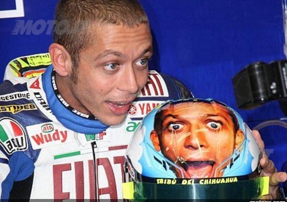 Bellissimo il casco sfoggiato da Rossi per l'occasione.