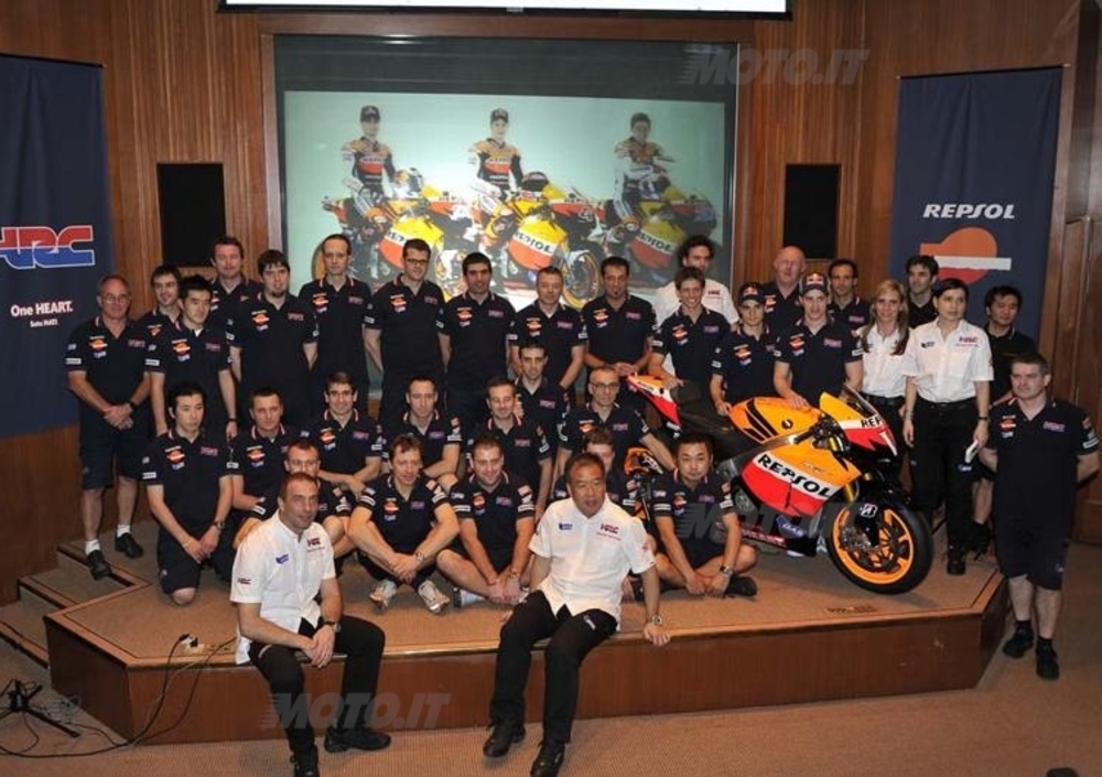In attesa dei primi verdetti del cronometro, è stata la HRC con il suo squadrone ad aprire le danze. Una presentazione che non ha nulla a che vedere con gli sfarzi di Madonna di Campiglio, dove lo sponsor riunisce Ducati e Ferrari, ma che segna un piccolo passo in avanti rispetto al passato, un tentativo di rendere più aperto uno dei box storicamente più chiusi del mondo. Un box che nel 2011 sarà tutt’altro che facile da gestire, con tre piloti come Andrea Dovizioso, Dani Pedrosa e Casey Stoner (in rigoroso ordine alfabetico) pronti a scannarsi, sportivamente parlando naturalmente, ma forse non solo, con Pedrosa, da sempre cocco dell’HRC, che sembra aver perso il potere avuto in passato.