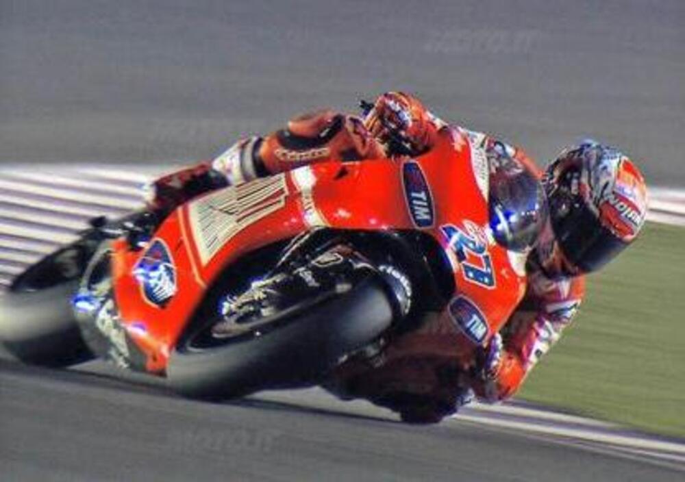 LOSAIL – In attesa del primo GP, accontentiamoci di una prima giornata di prove in Qatar piuttosto movimentata e interessante. Come era già successo in Malesia (quattro giorni su quattro), alla fine il più veloce è stato Valentino Rossi, ma questa volta il suo primo tempo era tutt’altro che scontato. Per diversi motivi: perché quella di Losail è la pista di Stoner e della Ducati e perché, al contrario, nelle ultime stagioni Valentino e la Yamaha hanno sempre faticato in mezzo al deserto. Inoltre, dopo che Rossi era stato il più veloce nella prima parte della giornata (ma sarebbe meglio dire della serata, visto che qui si prova al buio dalla 18 alle 24 locali), era stato superato prima da Ben Spies, poi scivolato senza conseguenze, quindi da Casey Stoner. Ma quest’anno, evidentemente, Valentino non vuole perdere nemmeno in prova, nemmeno quando la prima posizione non conta nulla e così a pochi minuti dalla fine si è riportato in prima posizione, sfruttando una gomma più morbida.