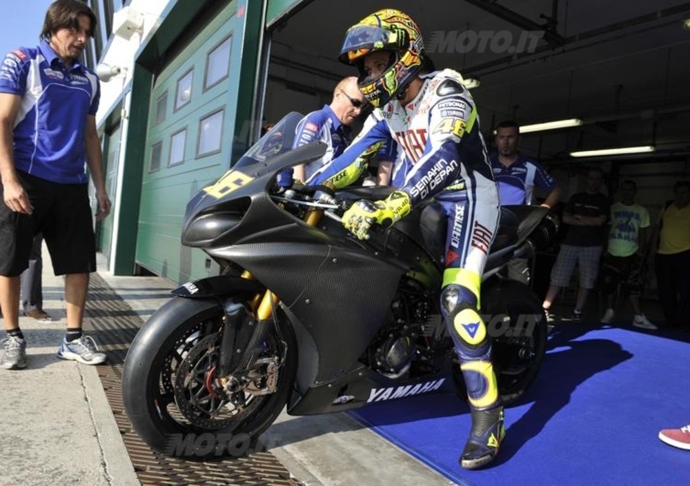 Valentino ha fatto in totale 26 giri in sella alla R1. Nella prima sessione di 11 giri ha fermato in cronometro a 1'41". Dopo la pausa ha percorso altri 15 giri e questa volta ha staccato un 1'38"200, non un tempone, ma nemmeno troppo distante dai tempi medi sul giro della Superbike. Il giro più veloce fatto da Max Biaggi l'ultima volta che ha corso a Misano ad esempio è stato di 1'36"589.