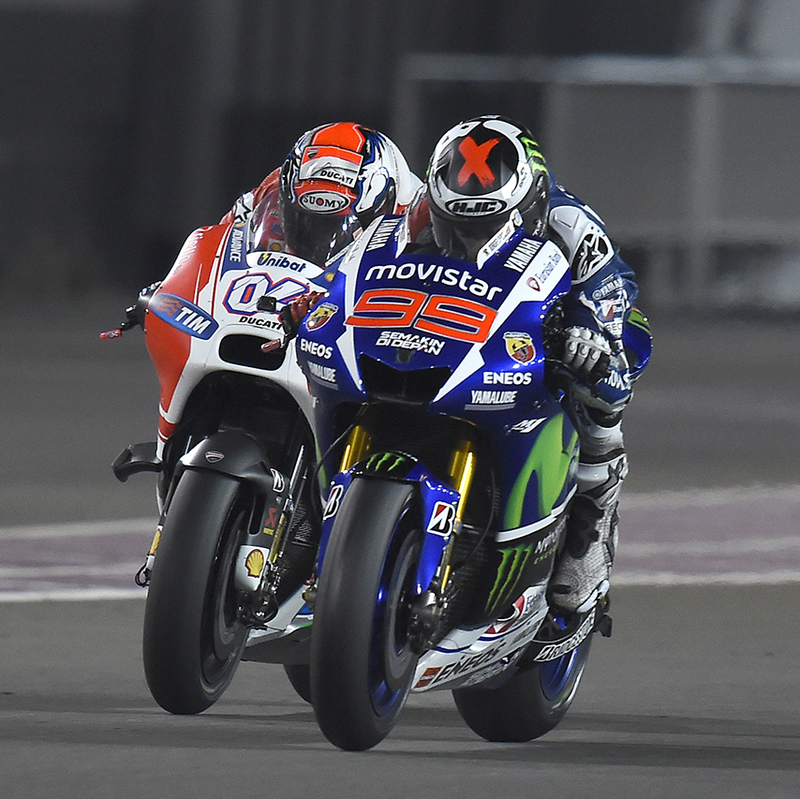 «Non so. Per metterlo sotto pressione bisogna stargli vicino: se dal primo turno entra e inizia a darci un secondo è dura metterlo sotto pressione. La grande differenza è che l’anno scorso eravamo in quattro e adesso siamo in sei, anche se adesso Pedrosa, al quale auguro di tornare al più presto, purtroppo non c’è. Ci sono le due Ducati: si rimescolano le carte, è differente avere più gente davanti. I due piloti della Ducati sono in grande forma, sono eccitati dalla possibilità di lottare per la vittoria e di avere finalmente una moto competitiva».