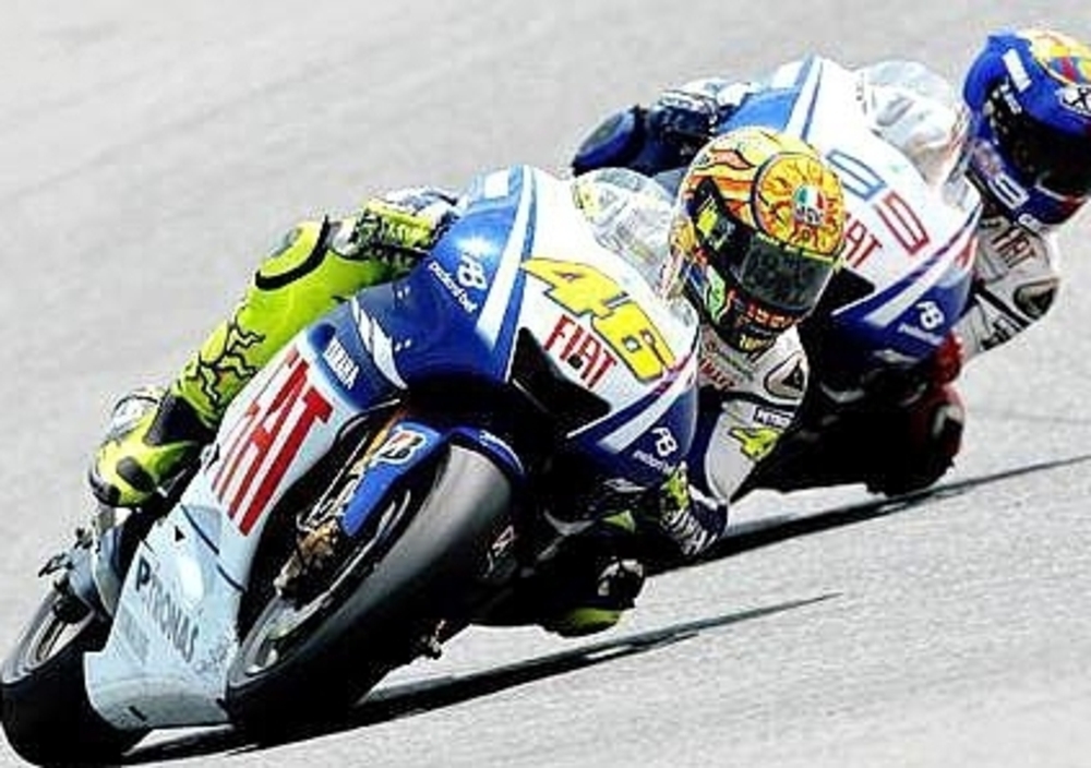 Le stelle della Yamaha, Valentino Rossi e Jorge Lorenzo, hanno dominato un incredibile GP di Catalunya, con una prestazione mozzafiato dal primo all'ultimo metro, di fronte al pubblico di Montmelo. Alla fine, ha avuto la meglio Valentino Rossi, il campione in carica, conquistando una memorabile vittoria numero 99, dopo uno straordinario sorpasso operato ai danni del ventiduenne compagno proprio all'ultima curva. La coppia del Fiat Yamaha Team ha concluso separata da meno di un centesimo, dopo venticinque giri emozionanti.