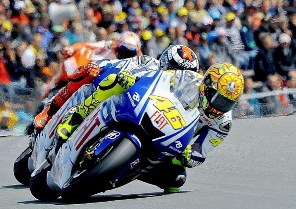 Gara in asciutto come molti speravano e subito lotta a quattro con Dani Pedrosa che parte alla grande, recuperando 6 posizioni in meno di 300 metri. Rossi non perde la prima piazza, mentre Lorenzo fatica qualche giro a trovare il miglior ritmo, ma non manca all'appello.