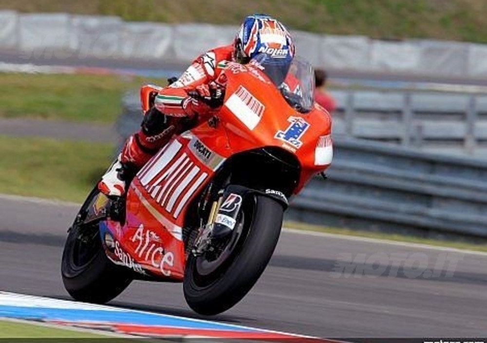 Il primo errore di Casey Stoner in due anni di gare con la rossa di Borgo ha le sembianze di una banale scivolata, dovuta a un eccesso di piega o - come dice il pilota stesso - a una gomma anteriore che non gli dà la necessaria sicurezza.