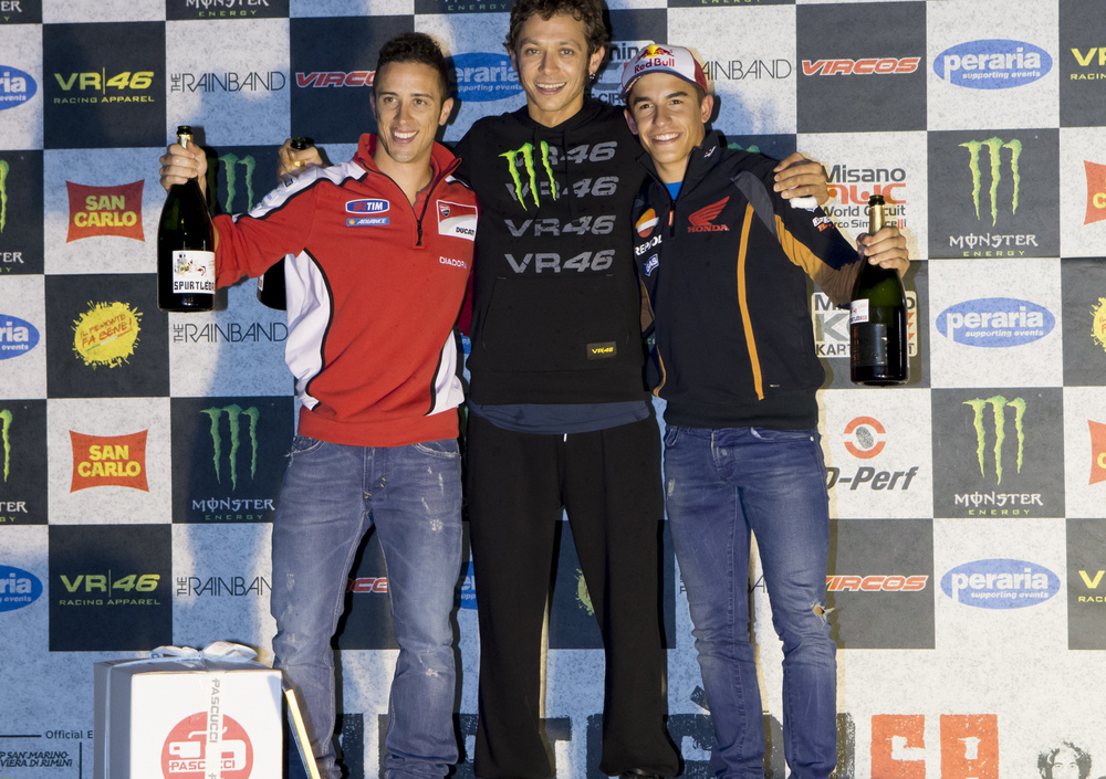 Rossi, Dovizioso e Marquez sono saliti sul podio dell'edizione 2014 della Spurtleda 58, la gara di kart in ricordo del Sic. Ecco gli scatti che raccontano la serata.