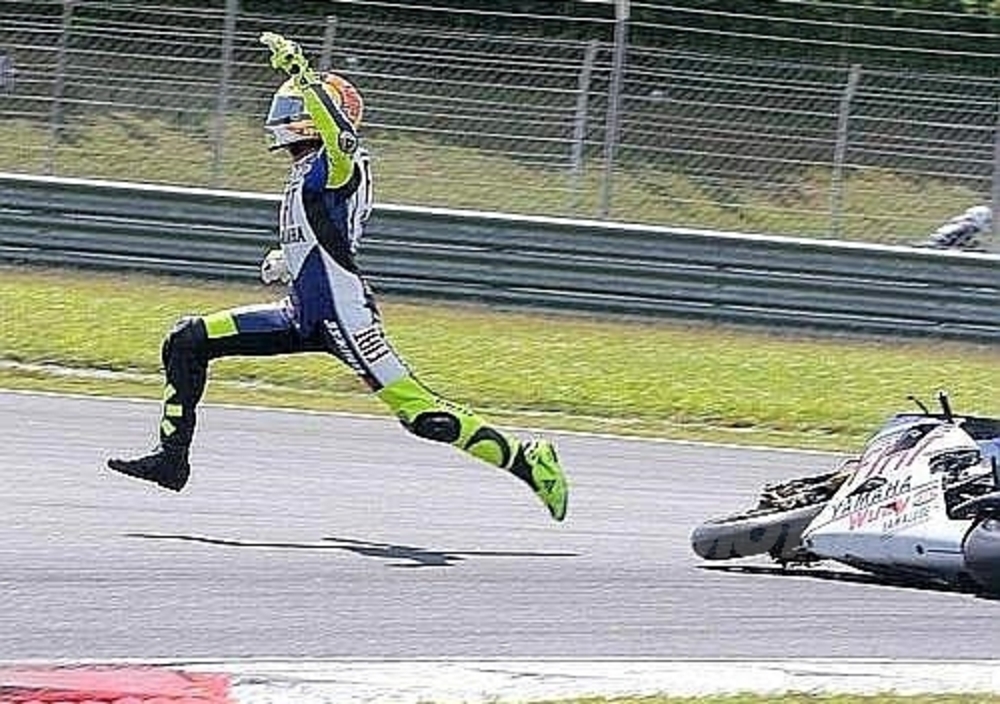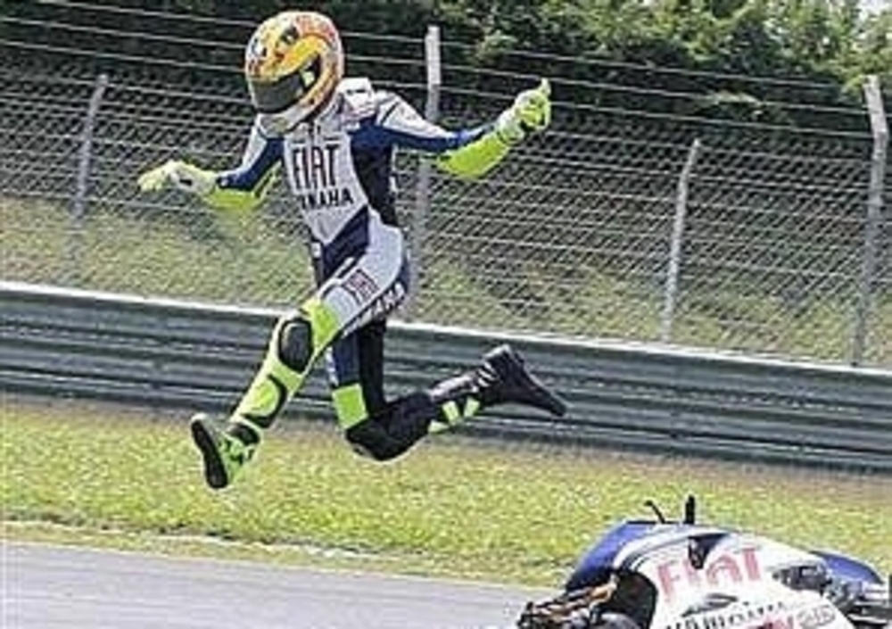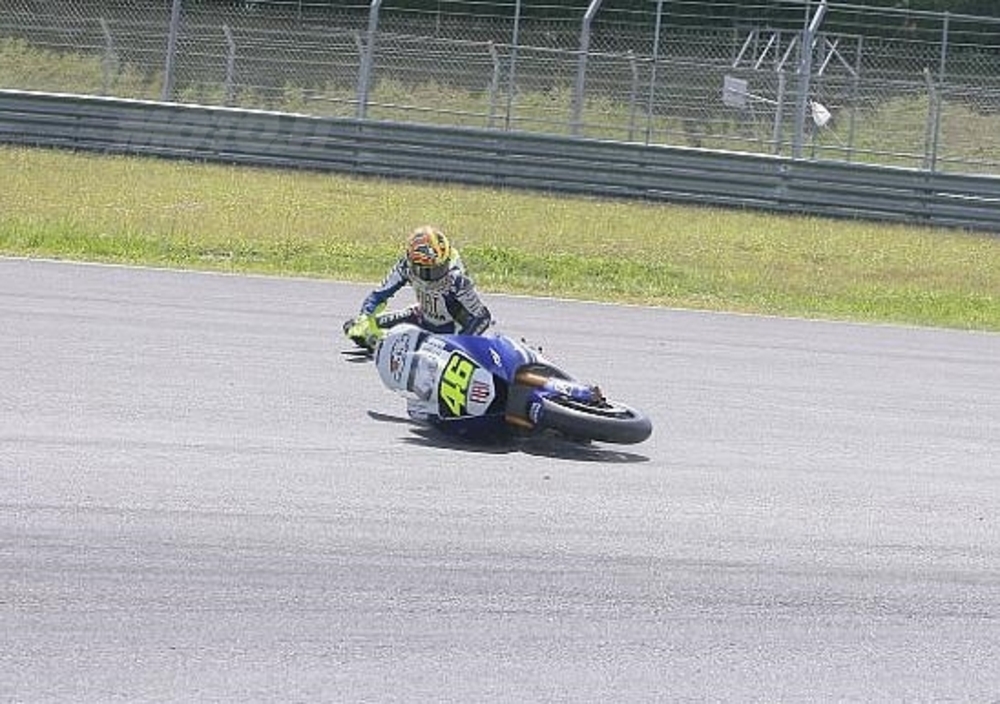 Lo stesso Valentino alla 10 di mattina era già in sella a scaldare le sue Bridgestone nuove di pacca. Forse la voglia di fare amicizia alla svelta lo ha tradito, inducendolo ad aprire il gas troppo presto, quando le gomme non erano ancora in temperatura.