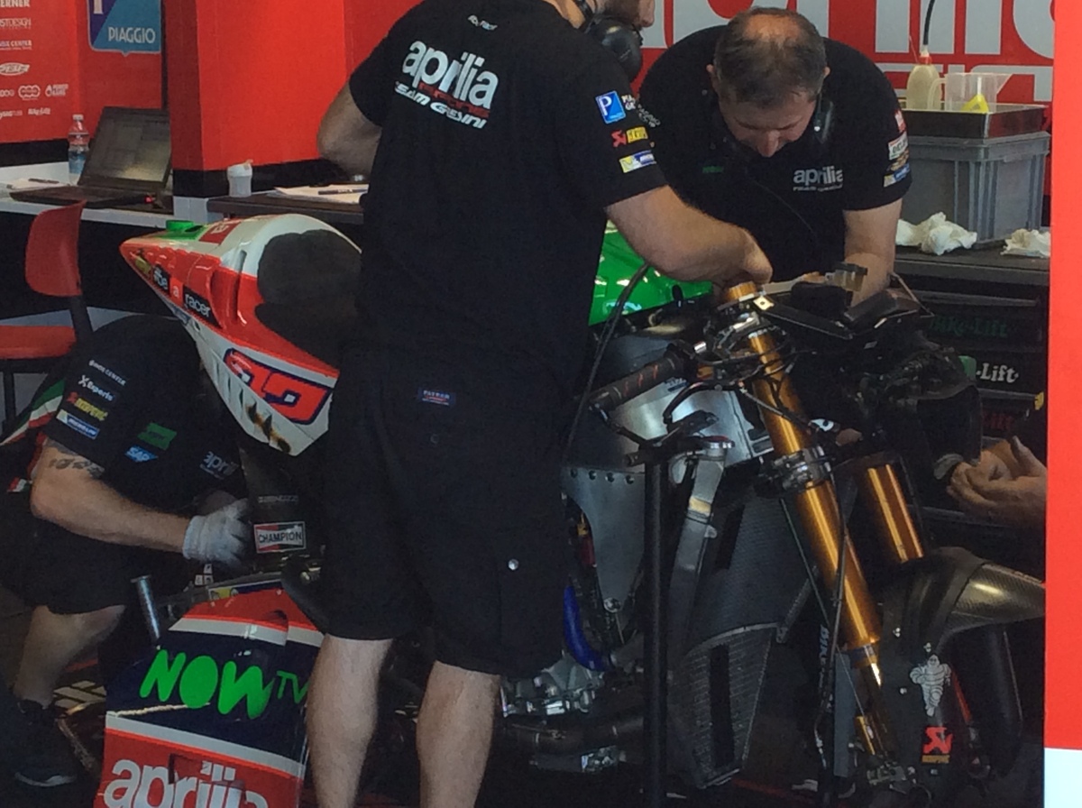 Grande lavoro al box di rossi: stanno cambiando la geometria dell'avantreno, sono state cambiate le boccole per modificare l'angolo di sterzo