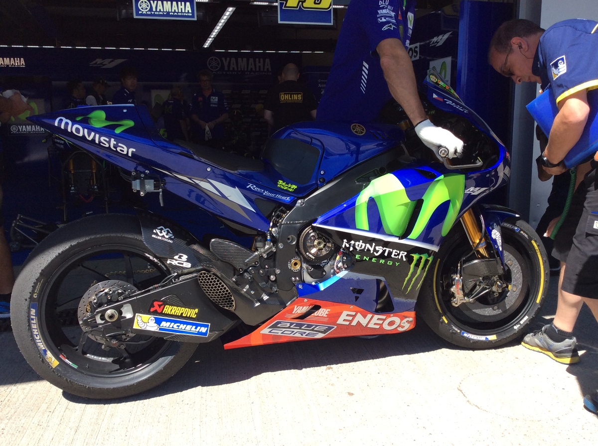 Fa molto caldo e la temperatura è elevata. In Casa Yamaha, Rossi e Vinales hanno provato un nuovo telaio. Tempi: