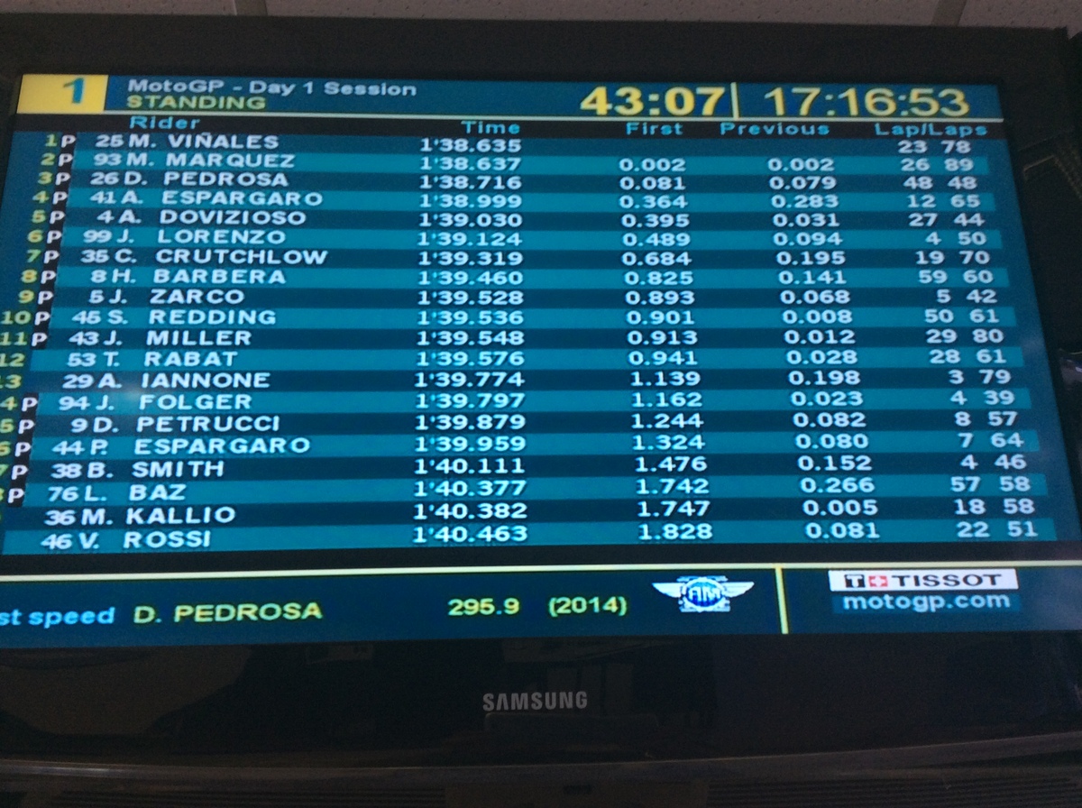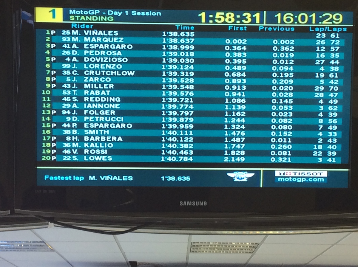 Vinales (1’38”878) a.espargaro, marquez, crutchlow miller dovizioso iannone rabat lowes tsuda kallio