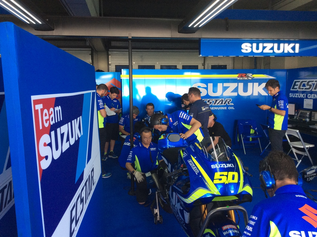 In pista anche Sylvain Guintoli, l’iridato SBK che a Le Mans sostituirà l’infortunato Alex Rins sulla Suzuki