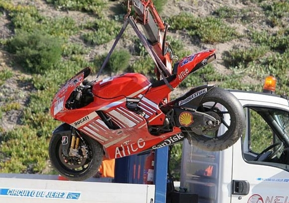 Test pre-mondiale di Jerez. Casey Stoner cade e si infortuna al legamento della spalla
