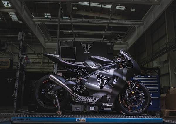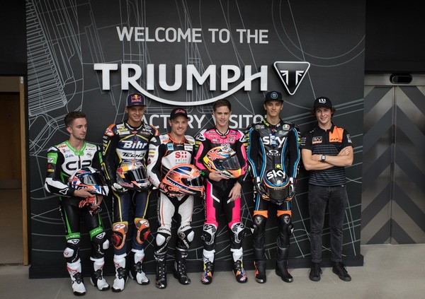 La moto, equipaggiata con il motore a tre cilindri di 765 cc derivato dalla Street Triple RS di serie, è stata mostrata ieri proprio nello stabilimento Triumph di Hinkley a una rappresentanza di piloti dell’attuale campionato Moto2: Sam Lowes, Danny Kent (seguito da Toseland ai suoi inizi), John McPhee, Luca Marini, Isaac Viñales, Joe Roberts e Bo Bendsneyder.