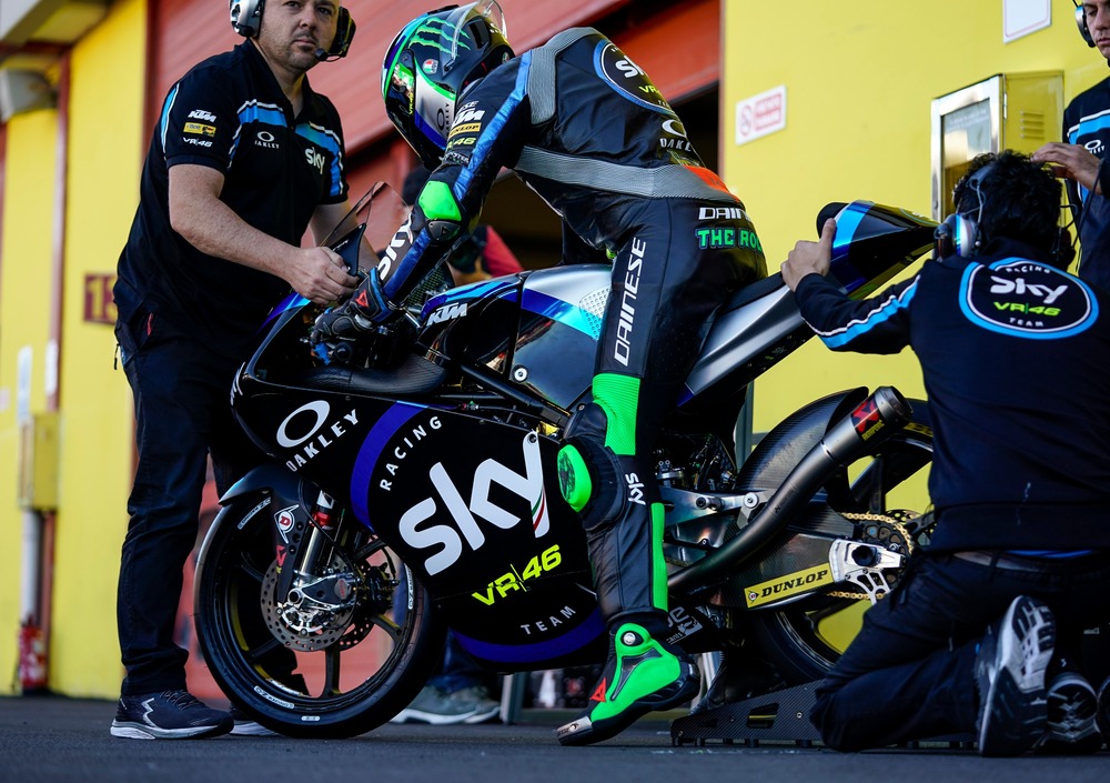 La paura di sbagliare qui c’è per davvero, concreta, palpabile, quella fobia di non essere all’altezza della storia. Si sente forte questo sentimento soprattutto tra i giovani piloti italiani dello Sky Racing Team VR46. Vivere questa atmosfera da pilota per la prima volta, per alcuni, a livello mondiale è qualcosa di incredibile e drammatico allo stesso tempo.