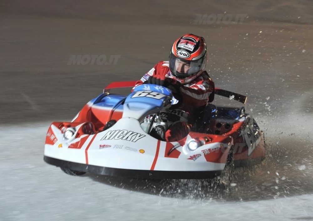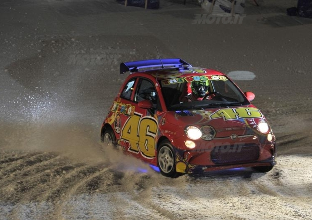 Le foto che vi mostriamo ritraggono un Valentino in pieno svago, che ne combina peggio di Bertoldo dietro al volante della Fiat 500 Abarth e del go-kart.