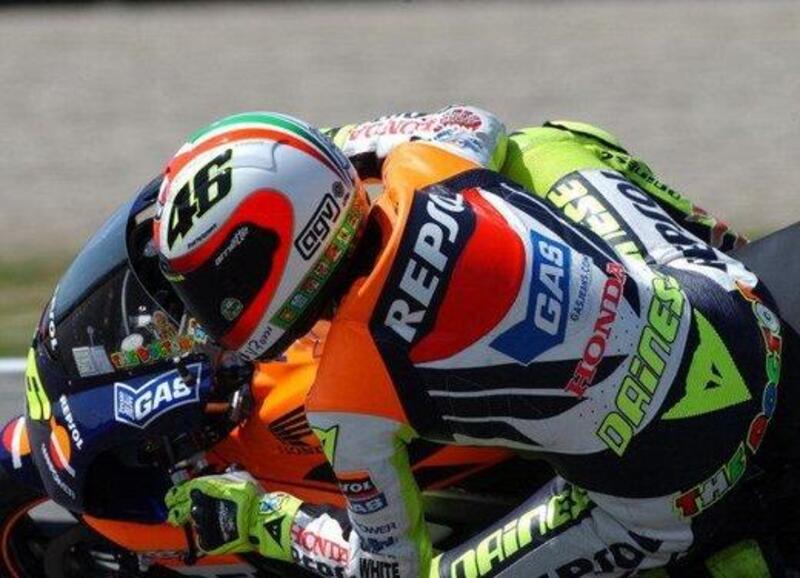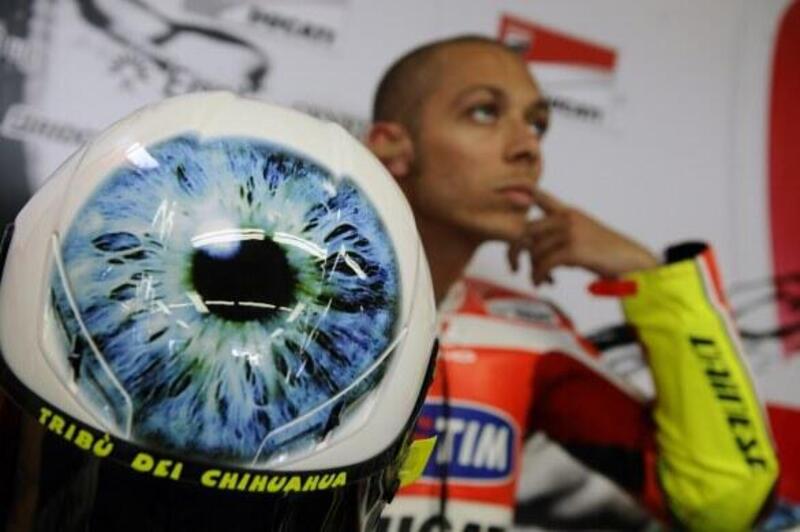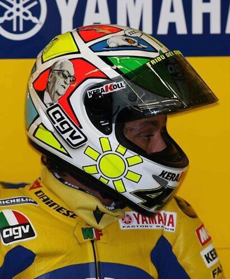 Appena tre anni prima, però, il Mugello aveva fornito l’occasione per un altro dei caschi iconici di Valentino Rossi. Quello con la faccia del Dottore in piena espressione da “alta velocità”. "E' la mia faccia quando entro nella curva San Donato dopo il rettilineo qui al Mugello a circa 300 km/h" – disse il dottore presentando il casco pensato per il GP d’Italia e realizzato in una manciata di ore da Aldo Drudi. L'idea di riprodurre il volto di Vale, infatti, era maturata in seguito ad una battuta e per riuscire a presentare la calotta in tempo per il GP d'Italia, Drudi e i suoi hanno lavorato per quasi due giorni senza alcuna pausa.