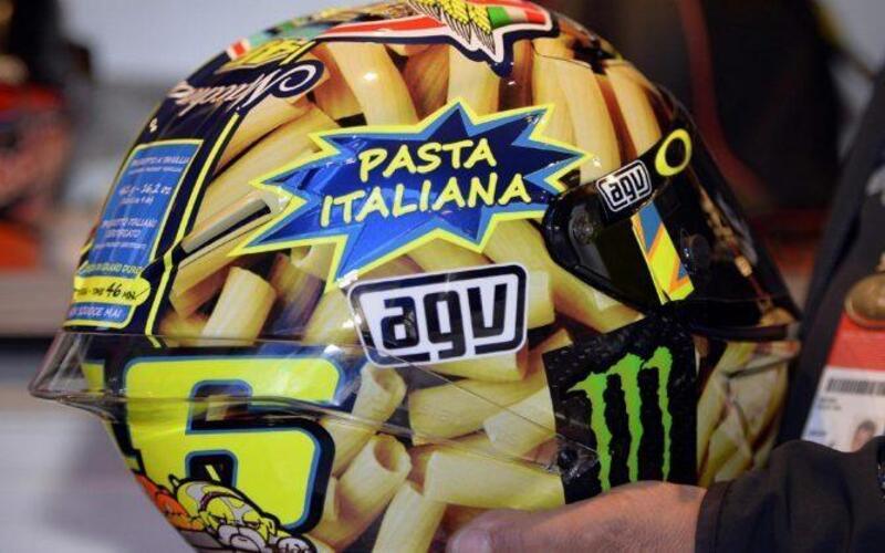Sei anni dopo, mentre gran parte dei calciatori che avevano partecipato a quell’Europeo avevano già appeso gli scarpini al chiodo, Valentino Rossi era ancora in pista e ancora pienamente competitivo. Tanto che con Aldo Drudi diede vita, nel 2014, ad un altro capolavoro capace di celebrare l’italianità: il casco con la pastasciutta. Ma una pastasciutta speciale, con 46 minuti di tempo di cottura e la caratteristica di non scuocere mai.