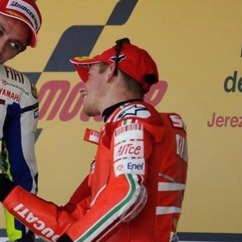 Beh, uno cinque volte campione del mondo, consecutivamente, della classe 500. L'altro due volte campione del mondo della MotoGP, su due moto differenti.
