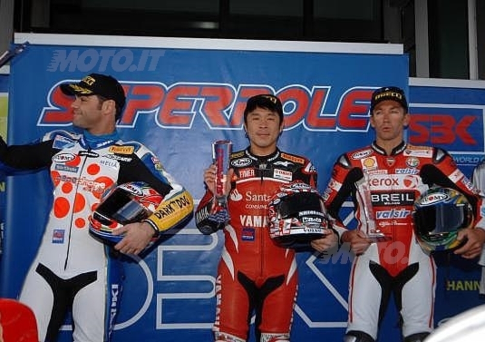 Gara 2 - 1. Bayliss (Ducati Xerox); 2. Haga (Yamaha); 3. Corser (Yamaha)