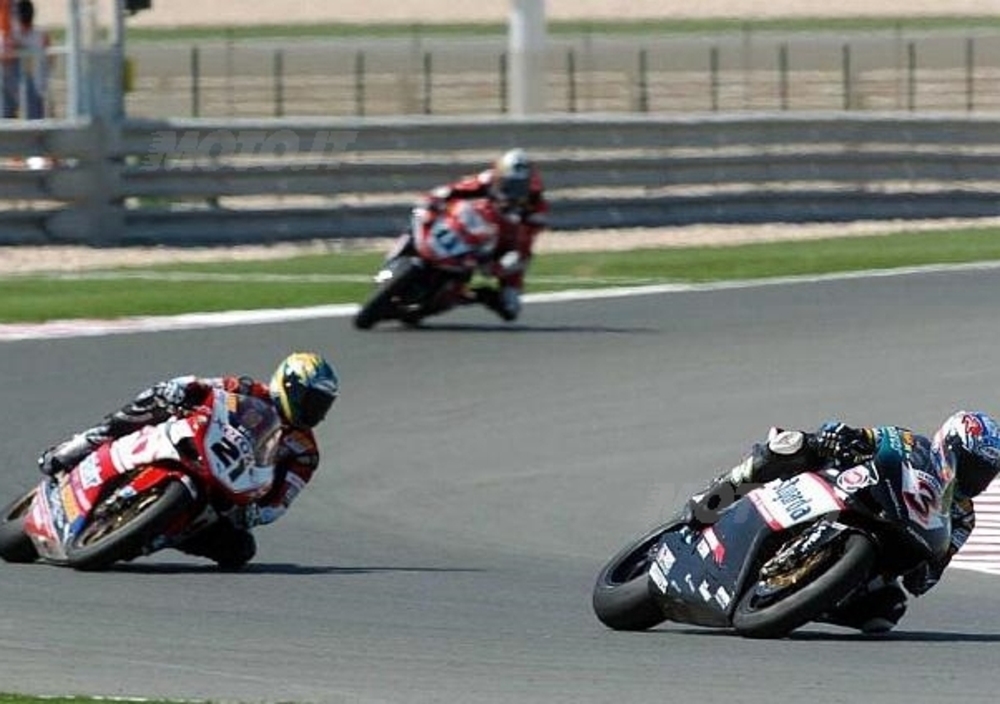 In gara 1 Biaggi scatta bene al verde ed entra nel gruppo di testa, rompendo gli indugi al nono giro, quando infila prima Haga, poi Corser e successivamente Neuchirchner portandosi in testa all'undicesima tornata. Alle sue spalle rinviene però Bayliss con il quale Max ingaggia negli ultimi due giri una spettacolare battaglia che li porta sino al traguardo separati da un solo decimo di secondo. Da incorniciare anche la rimonta di Ruben Xaus, che dopo una prima parte di gara nella quale accumula qualche secondo di ritardo, inanella una bellissima rimonta che lo porta sino alle spalle di Corser.