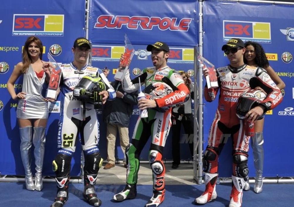 Ci si aspettava di più anche da Lanzi mentre Vermeulen evidentemente non si è ancora ripreso dai postumi della brutta caduta di Phillip Island. Che gare ci aspettano domani? Dipenderà molto dalle condizioni climatiche e dalla pioggia che oggi ha risparmiato la Superpole e che tutti sperano faccia altrettanto domani per le due gare che domani si disputeranno sulla lunghezza di diciotto giri. Biaggi cercherà di andarsene e di approfittare del poderoso motore della sua Aprilia, ma come sempre la pattuglia inglese farà di tutto per evitare un suo assolo, aiutata anche da Fabrizio che smania per ritornare alla vittoria sul circuito che lo scorso anno lo vide vincitore per la prima volta in Superbike. Saranno come sempre due gare da vietare ai deboli di cuore e noi saremo qui per raccontarvele e per riportarvi i commenti dei protagonisti. Restate collegati