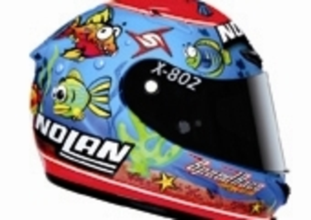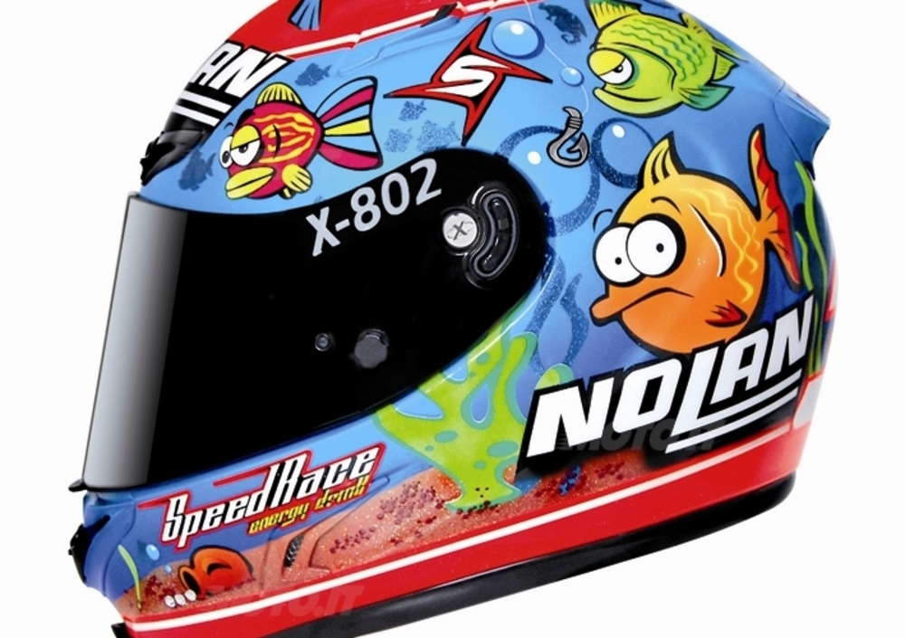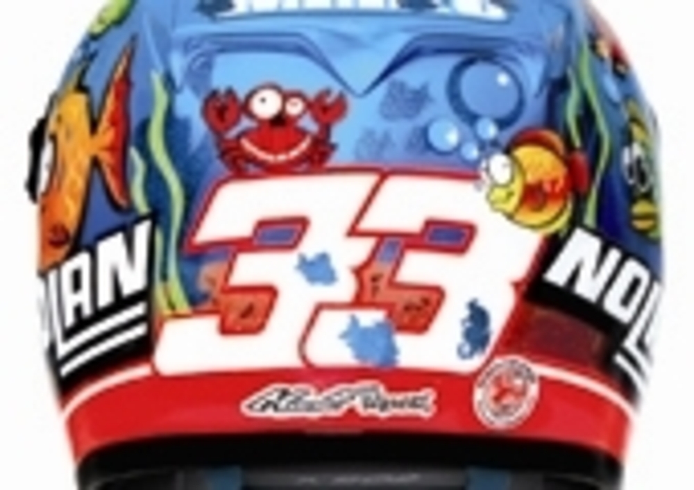 Per l’occasione, Marco ha deciso di personalizzare il suo Nolan X-802 con una livrea speciale e simpatica, realizzata in collaborazione con Max Design: pesci di vari colori e specie, per richiamare l’estate e la passione di Marco per il mare. Il casco si trasforma in un fondale marino. Pinne, maschera e boccaglio persino per il riccio portafortuna!