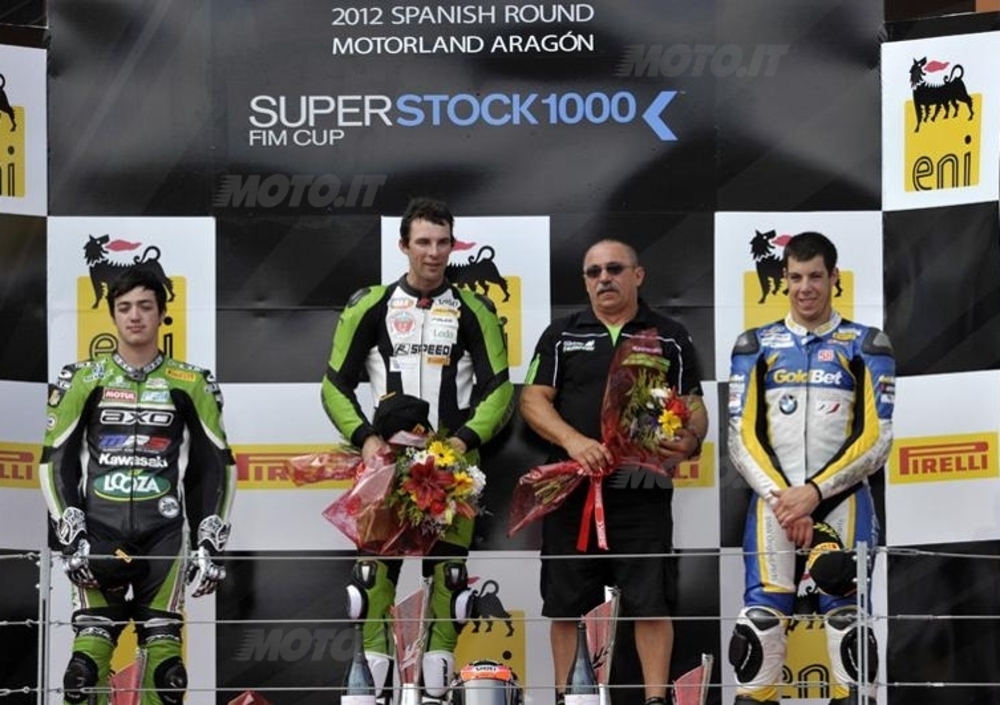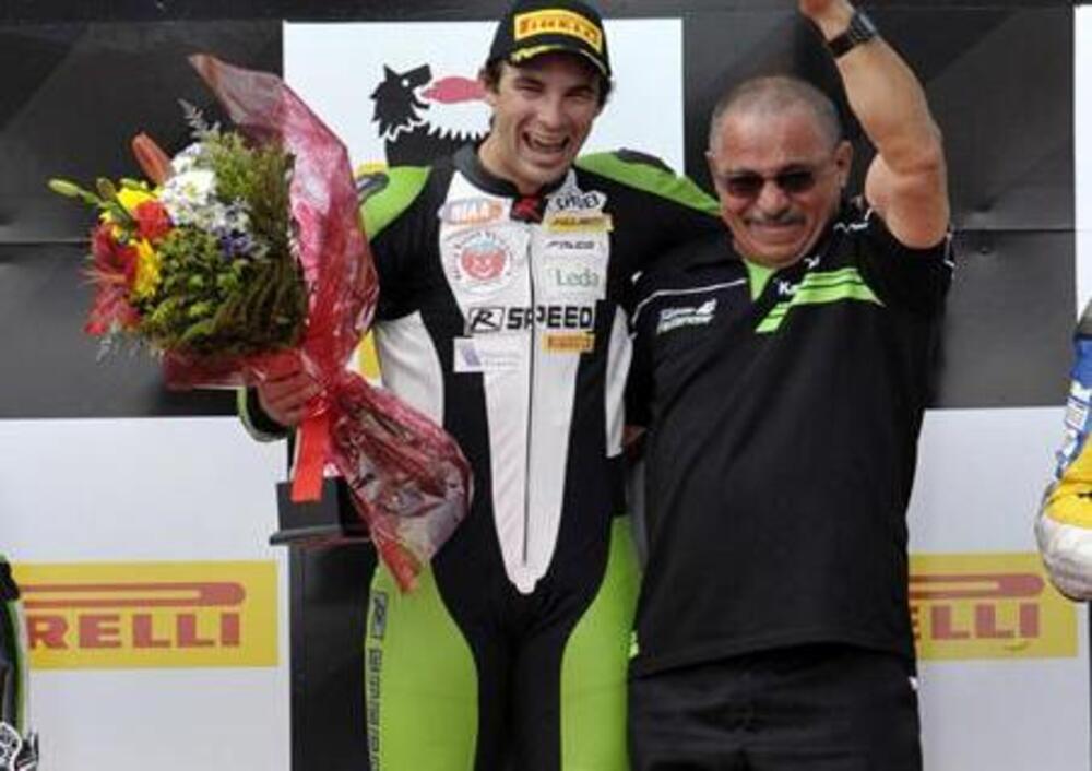 Staring ha vinto ad Aragon la gara della Stock 1000 con la Ninja del team italiano. Tutto il paddock si è stretto attorno alla famiglia Pedercini per festeggiare una vittoria dal valore storico anche per la Kawasaki | C. Baldi