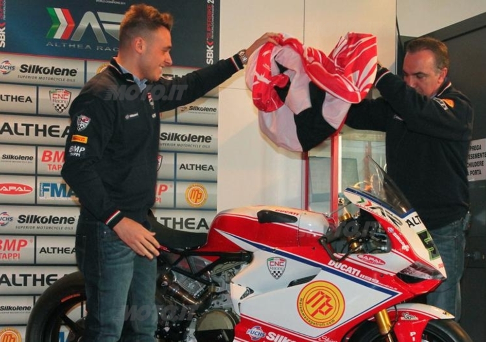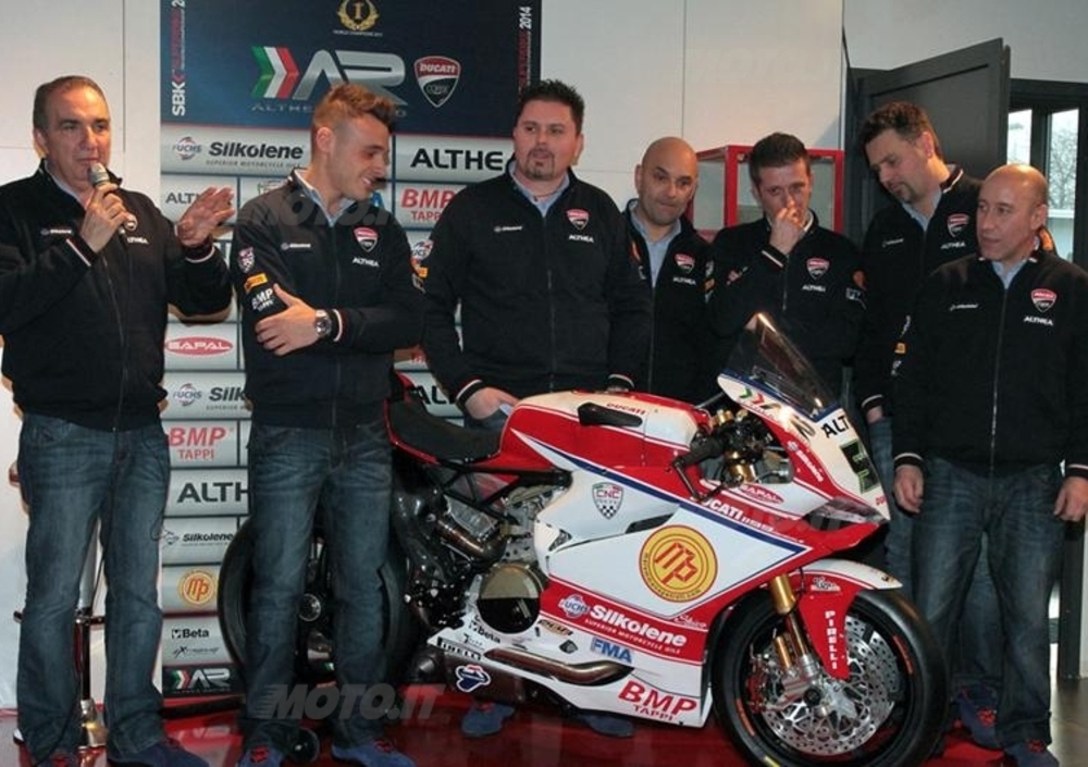 Sabato scorso presso la sede della bellissima collezione “Moto dei Miti” di Genesio Bevilacqua a Civita Castellana, il team Althea Racing ha presentato la sua squadra 2014 e la livrea della 1199 Panigale R con la quale Niccolò Canepa darà l’assalto al titolo della nuova Superbike Evo. Resta invariato lo staff tecnico che è lo stesso che assieme a Carlos Checa si è aggiudicato il mondiale nel 2011. Dopo un anno con Aprilia, la squadra di Bevilacqua torna al primo e vero amore, la Ducati. Basta fare un giro nel salone che ospita le “Moto dei miti”, la fantastica collezione di moto da corsa del patron Althea, per capire come la passione di Genesio sia tutta rosso Ducati. Un ritorno che fa ovviamente molto piacere anche alla casa di Borgo Panigale per la quale il team Althea sarà la squadra di riferimento nella Evo, con il dichiarato intento di sviluppare al massimo la Panigale in vista di un 2015 tutto Evo.