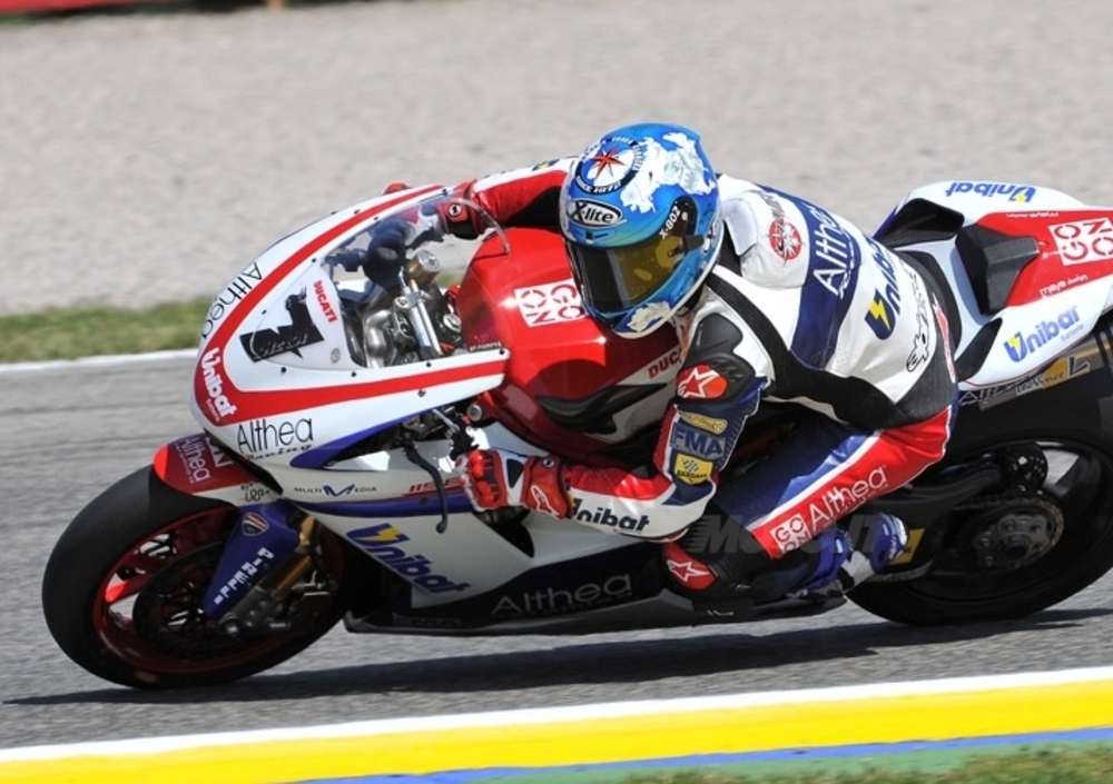 Dovrà probabilmente vedersela anche con il suo compagno di squadra a conferma della validità del lavoro svolto dal team Althea. Grande la prestazione di Jakub Smrz che si è inserito al secondo posto. Ancora una volta quindi i piloti privati della Ducati sono stati più veloci dei due ufficiali, con Fabrizio (caduto senza conseguenze sia questa mattina che nel pomeriggio) ed Haga piazzatisi rispettivamente al sesto e settimo posto e seguiti a poco più di un decimo da un sorprendente Lorenzo Lanzi. Solo Biaggi ed Haslam, i protagonisti di Portimao, hanno saputo interrompere l’egemonia delle rosse italiane.