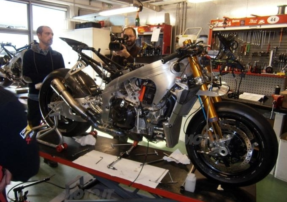 Nemmeno il tempo di abbassare lo sguardo e ci ritroviamo davanti ad una delle moto che stanno preparando per Melandri, mentre nel box accanto si studiano nuovi accorgimenti per la nuova Capo Nord
