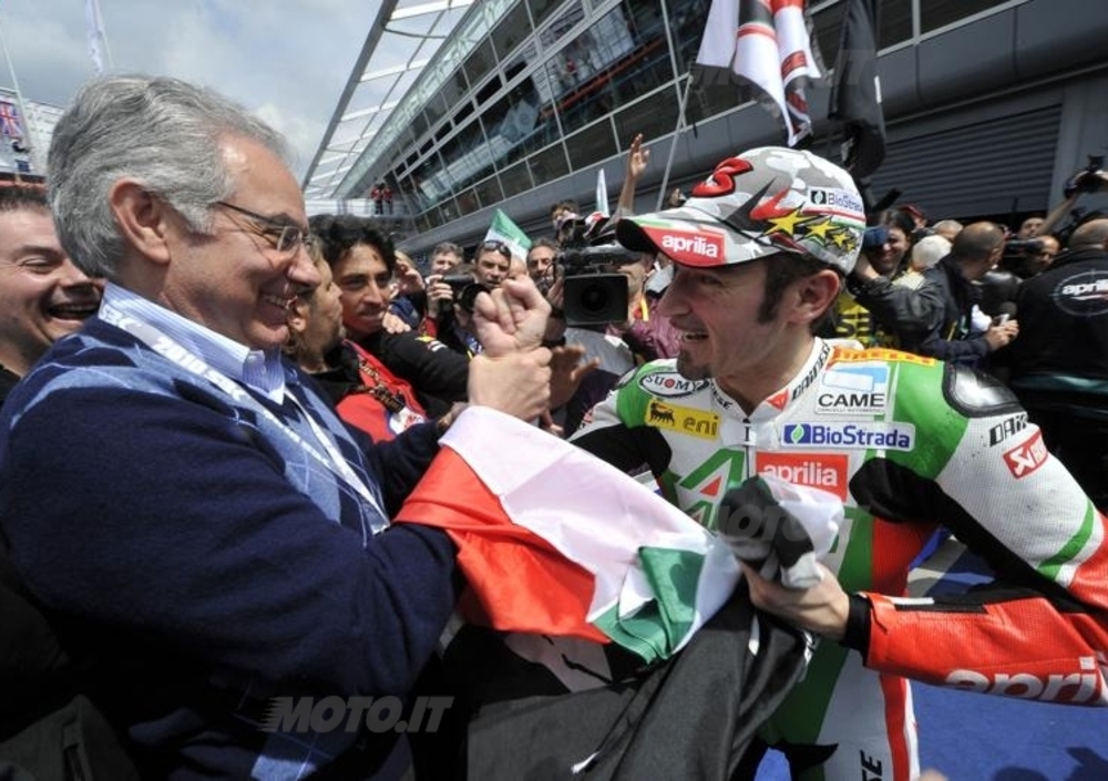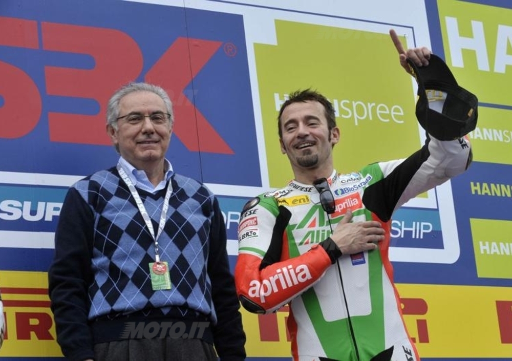 Max, alla guida della sua Aprilia Alitalia RSV4, ha preceduto gli alfieri britannici della Yamaha Crutchlow e Toseland. Leon Haslam, capofila del mondiale è arrivato quarto. Ma i tre piloti britannici hanno reso la gara incertissima esaltando i meriti di Max che ha saputo resistere a tutti gli attacchi. Scattato dalla prima fila Biaggi ha così condotto praticamente sempre e ha conquistato la sua prima vittoria a Monza. Con questa affermazione Max ha recuperato ben 12 punti ad Haslam e ora è a 8 punti dalla testa della classifica.