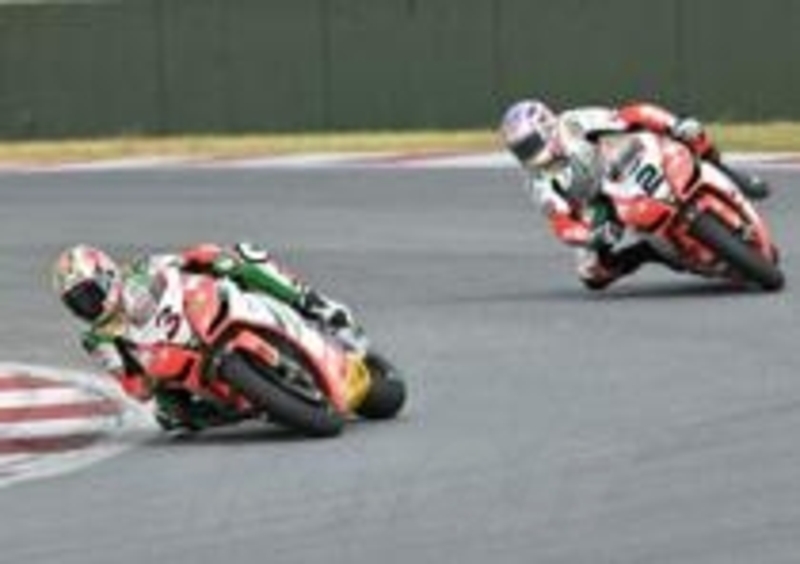 Michel Fabrizio in Gara 1 ha fatto una partenza perfetta, passando Crutchlow, Toseland e Checa subito dopo il semaforo. L’italiano ha distanziato rapidamente Checa (sulla Ducati 1198 di Althea Racing) ed ha poi mantenuto un secondo di vantaggio fino alla fine. I tempi si sono inevitabilmente alzati nelle fasi finali dei 24 giri di gara ma Michel ha gestito attentamente il distacco e ha conquistato la sua prima vittoria della stagione 2010 sempre con poco più di un secondo di vantaggio sullo spagnolo. Noriyuki ha vissuto una gara più difficile, lottando contro la mancanza di aderenza sul posteriore. Nei primi giri era riuscito a recuperare qualche posizione passando da sedicesimo a dodicesimo ma dopo circa dieci tornate la carenza di “grip” ha condizionato pesantemente i suoi tempi tanto da chiudere Gara 1 in diciassettesima posizione.