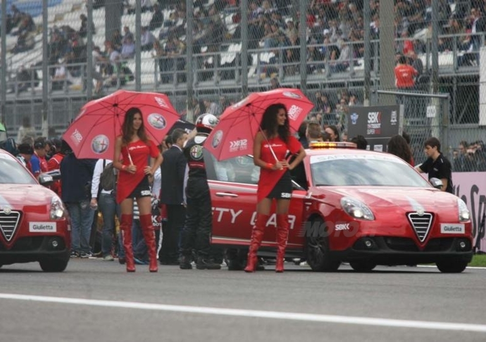 Con la pista quasi asciutta tutti i piloti avevano optato per le gomme slick e non appena la pioggia ha iniziato a bagnare il tracciato brianzolo, sempre in parabolica, sono caduti in tre : Salom, Hopkins e Gadea. Gara sospesa con la bandiera rossa e nuovo via previsto dopo pochi minuti. Rientrati pista per la seconda parte della gara, i piloti non salivano sulle loro moto ma si mettevano a discutere se fosse il caso di prendere il via, visto che ora la pista era esattamente nelle stesse condizioni di ieri in Superpole. Per valutare le condizioni del tracciato alcuni piloti effettuavano un giro di pista in automobile assieme agli incaricati Infront e si constatava che in alcuni punti la pista era molto bagnata e sarebbe stato pericoloso percorrerli con le gomme slick. In particolare la curva de Serraglio, a metà tra la seconda di Lesmo e la variante Ascari, era completamente bagnata e proprio in quel punto entrambi i lati sono circondati dal guard rail.