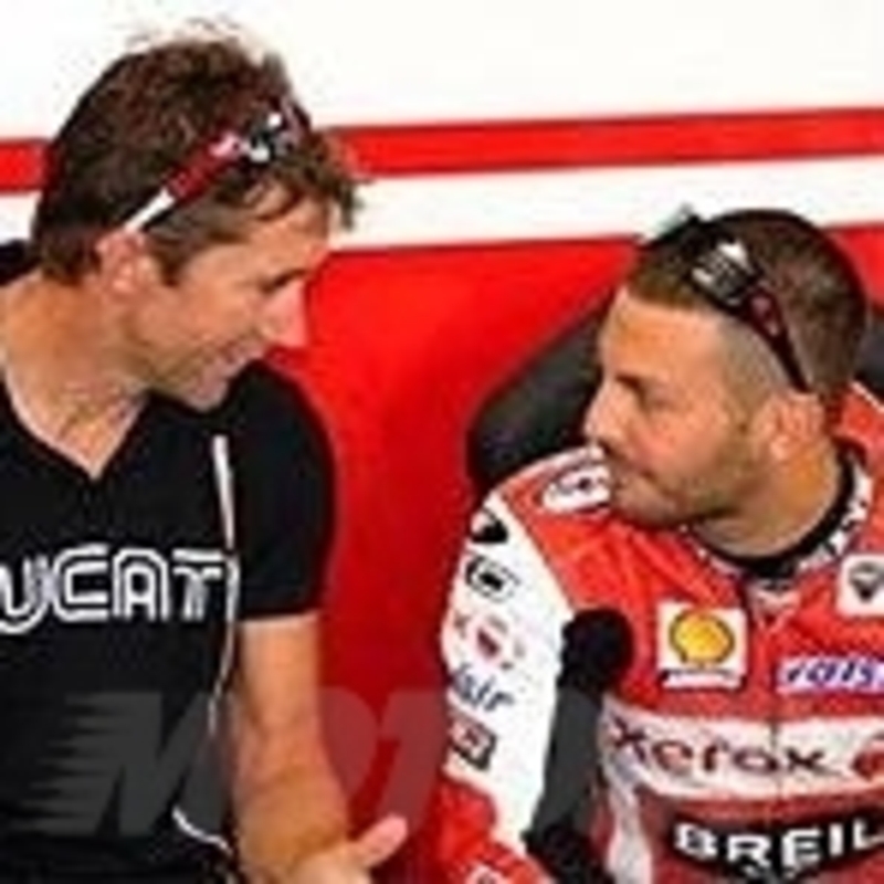 I due giorni di prove con la moto del team sviluppo, pianificati mesi fa come parte del programma di test del Ducati Xerox Team, sono stati condizionati da una pioggia battente. Bayliss, costretto a girare sul bagnato, si è trovato subito a suo agio nonostante le difficili condizioni e durante la mattinata ha fatto registrare il suo miglior tempo, fermando il cronometro sui 2’05”. Nel pomeriggio ha smesso di piovere, ma l’asfalto è rimasto comunque molto bagnato e scivoloso, impedendo al pilota di migliorare ulteriormente il suo tempo.