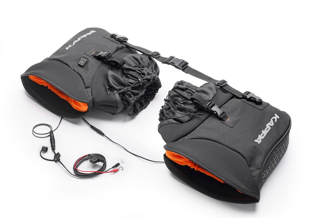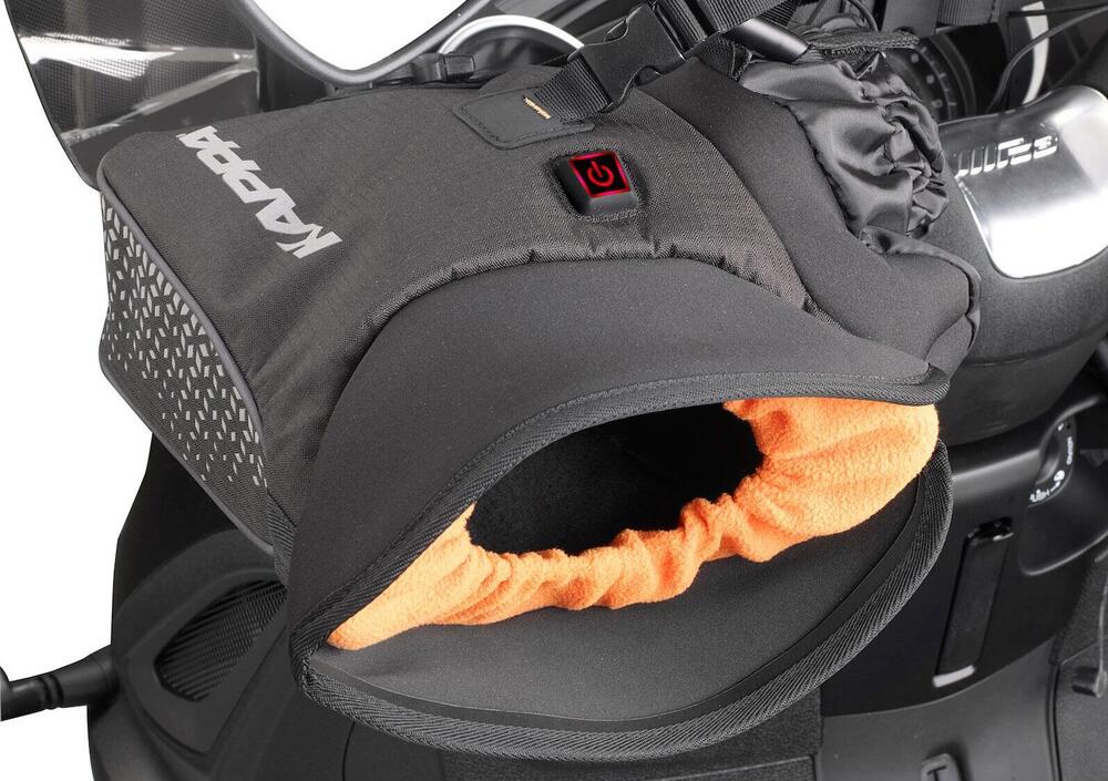 Realizzate in poliestere imbottito, i copri manopole KS604 si riscaldano in 3 minuti, una volta collegate direttamente alla batteria del veicolo tramite i cavi forniti di serie oppure tramite USB al kit Kappa Power Hub KS110 + KS111 (acquistabile separatamente).