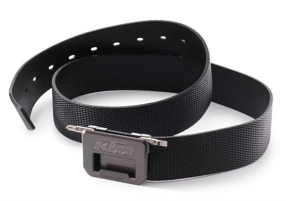 Infine, la cintura TOOL BELT è d’obbligo per tutti gli appassionati di avventura. Nella sua fibbia loggata KTM sono infatti integrati un cacciavite a croce, uno a taglio e… un apribottiglie, per festeggiare con gli amici il raggiungimento della tanto desiderata meta finale! Realizzata in pelle, è disponibile in tre differenti lunghezze al prezzo di 32,75 euro.