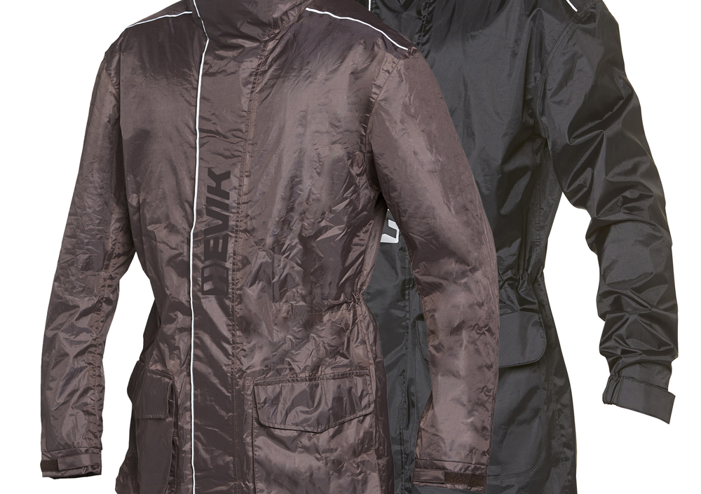 Per evitare sventolamenti, sono presenti regolazioni in vita e fondo giacca.