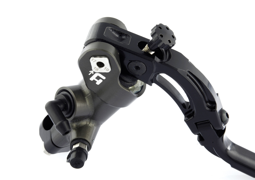 Le nuove pompe radiali sono realizzate in Ergal 7075 ricavato dal pieno e sono vendute con leva radiale Revolution, la più leggera sul mercato, capace di cambiare aspetto grazie agli inserti intercambiabili disponibili nei seguenti colori: Nero – Titanio - Oro – Blu – Argento - Verde - Rosso.