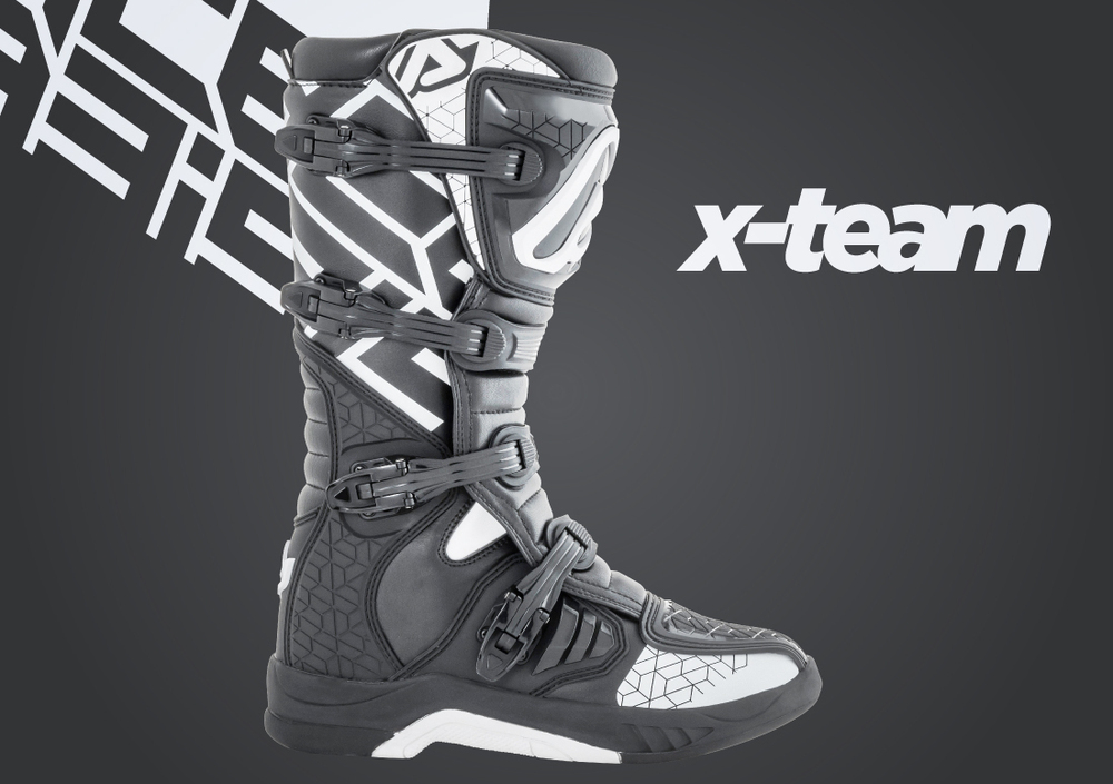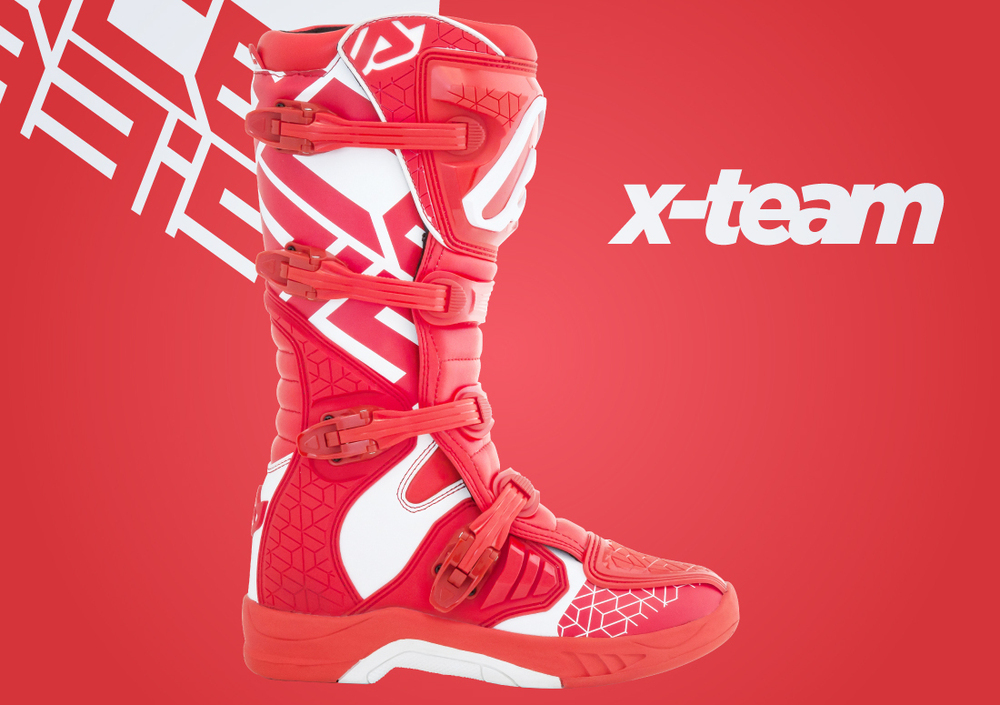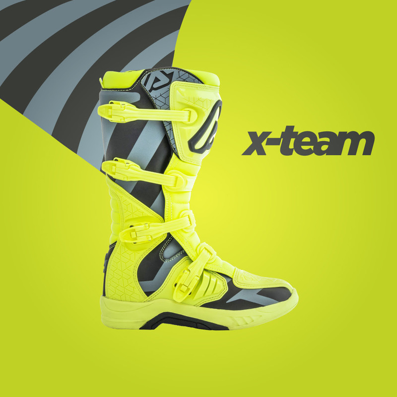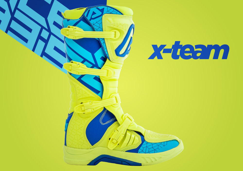 Difficile non lasciarsi colpire dalla sua vivacità: X-TEAM è il nuovo stivale di Acerbis con un'ampia scelta cromatica: 9 varianti di colori disponibili. Le superfici in plastica si combinano a materiali più morbidi e meno invasivi. Il risultato? X-TEAM supera le 3 omologazioni previste con il massimo dei voti - Livello 2 - e si colloca tra gli stivali da fuoristrada più leggeri sul mercato.
