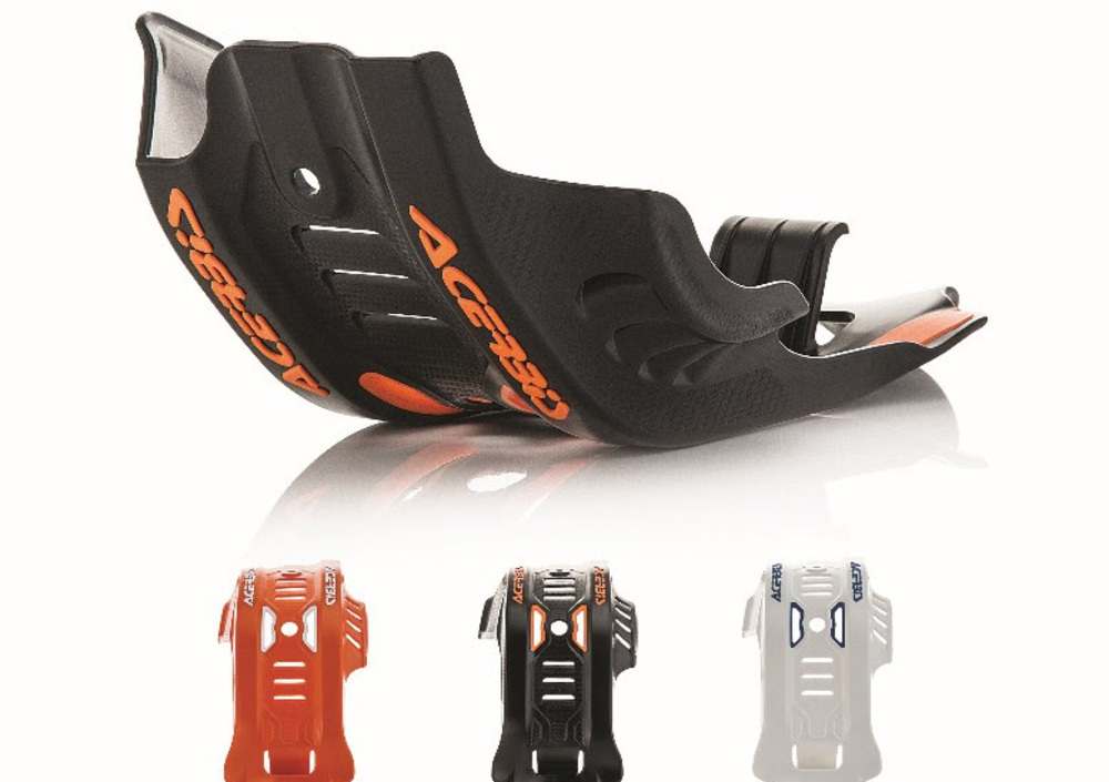 Leggerezza (750gr), grande protezione (anche del leveraggio) e facilità di montaggio sono le caratteristiche vincenti dello skidplate ACERBIS per i modelli KTM SXF e Husqvarna FC 450 2016.