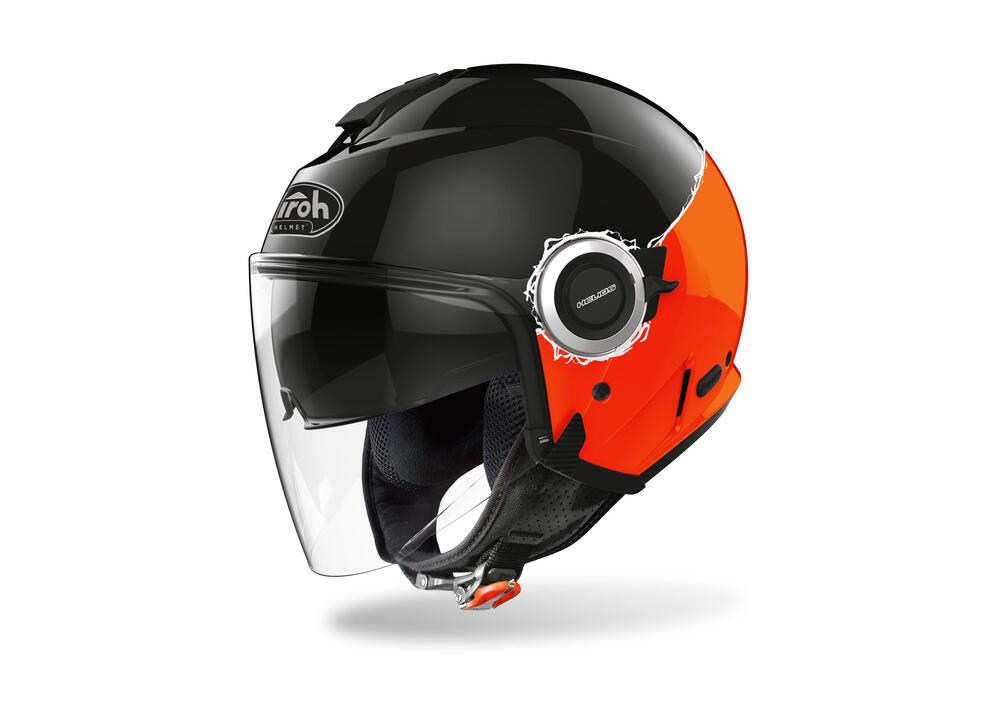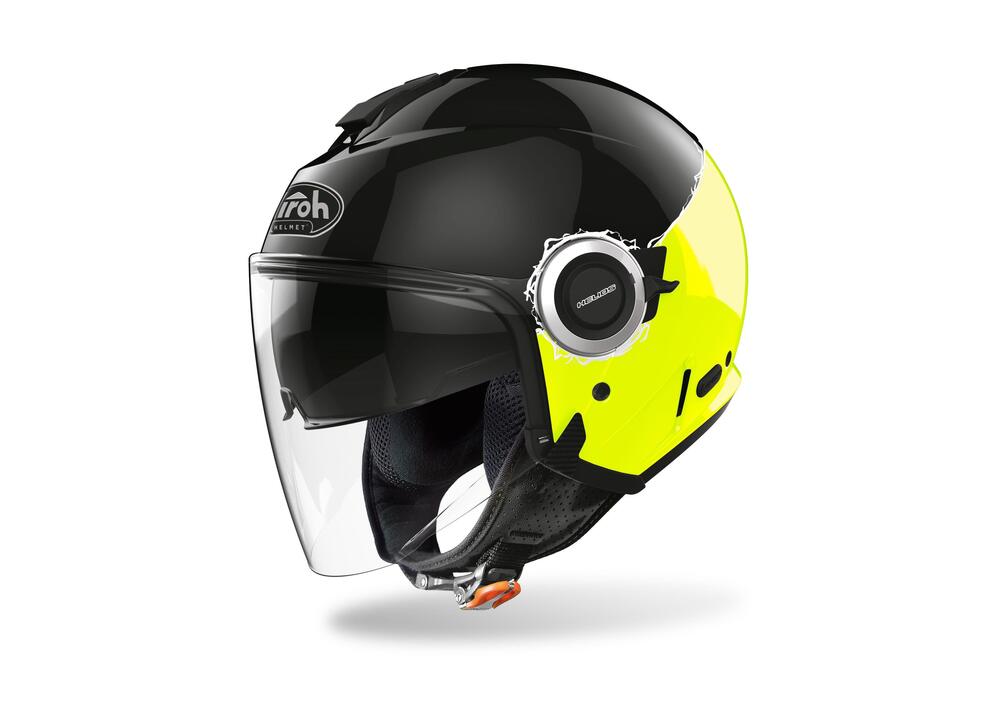 Il nuovo urban-jet Helios di Airoh, proposto in un variegato bouquet di colori e grafiche: Map Pink Matt, Fluo Yellow Gloss e Fluo Orange Gloss.