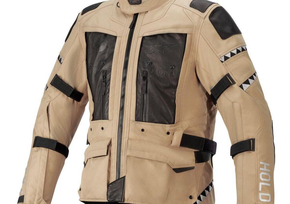 La giacca e i pantaloni Mowat della collezione HOLD FAST sono disponibili in colore sabbia con dettagli in pelle nera by Alpinestars, mentre entrambe le versioni sabbia e mimetica sono disponibili direttamente da El Solitario.