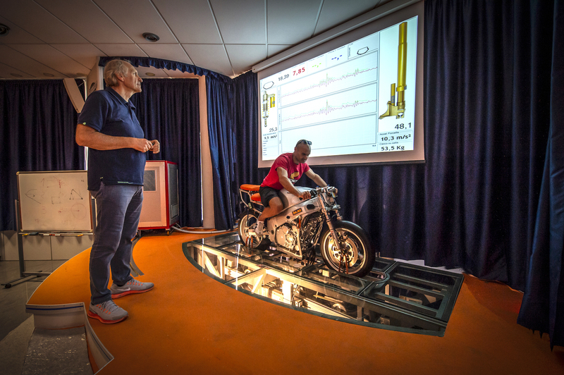 L’uso del banco - realizzato con una moto vera e propria, che viene sottoposta a sollecitazioni su entrambe le ruote da pistoni idraulici installati sotto il pavimento - aiuta moltissimo a comprendere le variazioni, a volte inaspettate e controintuitive, del comportamento della sospensione a seguito di una variazione nella taratura.