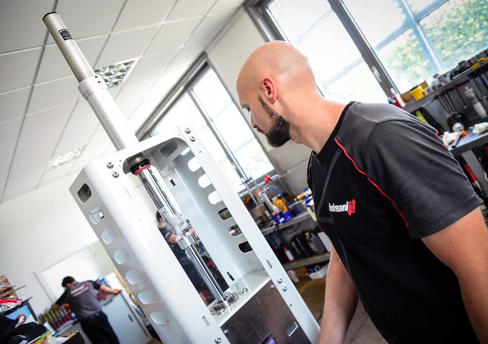Ma anche i banchi prova e quelli per la manutenzione, che negli ultimi anni sono diventati una fetta importantissima dell’attività di Andreani Group, e che - con comprensibile orgoglio - l’azienda fornisce anche a Öhlins stessa, con il loro logo. O per esempio, passando al settore bici, a Fox, che addirittura integra l’attrezzatura sviluppata da Andreani (una “macchina del vuoto”, di cui vi parliamo a seguire, e una pressa per verificare il corretto funzionamento del blocco degli ammortizzatori) nella dotazione obbligatoria per gli importatori di ogni paese.