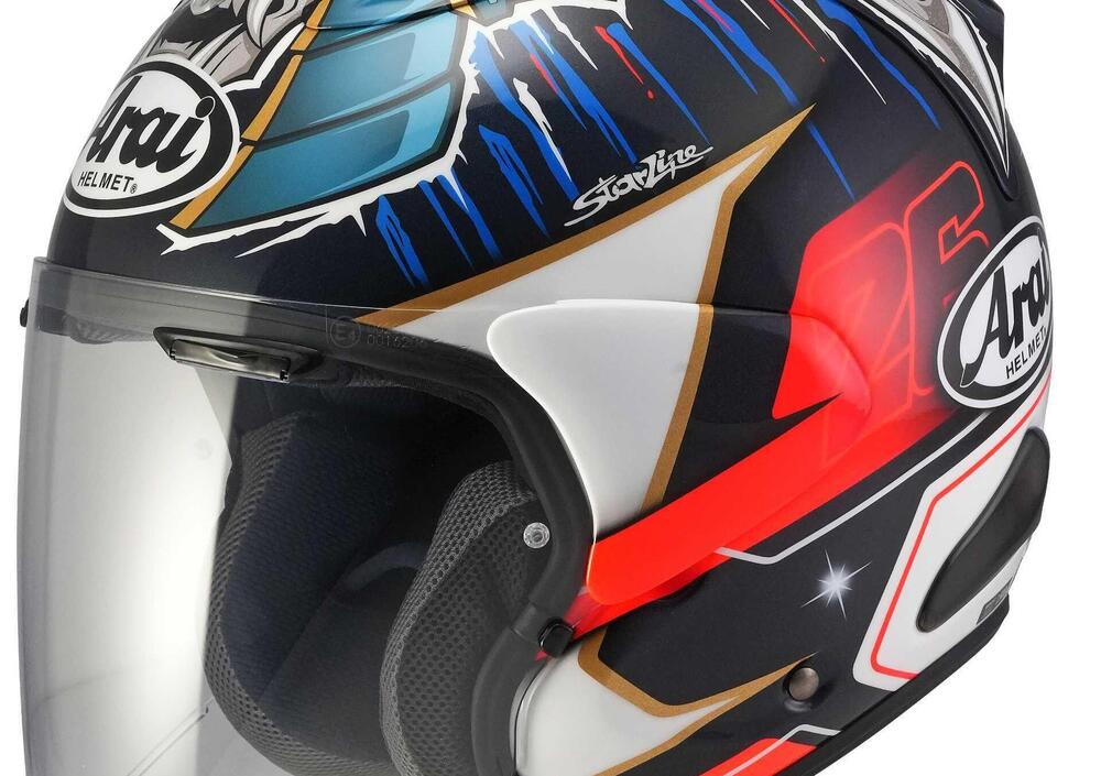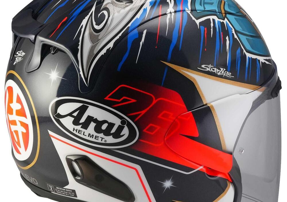 Caratterizzato dalla variante cromatica Pedrosa Shogun, questo casco si colloca nella fascia alta del mercato con un prezzo di listino di 899 euro, giustificato da una costruzione che risponde ai nuovi requisiti di sicurezza europei. Il passaggio all'omologazione ECE R22-06 ha comportato un affinamento della calotta che, pur mantenendo la tradizionale forma arrotondata tipica della filosofia Arai per favorire lo scivolamento in caso di impatto, implementa standard di protezione interni più severi rispetto a quelli previsti dalla normativa vigente.