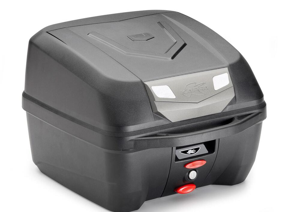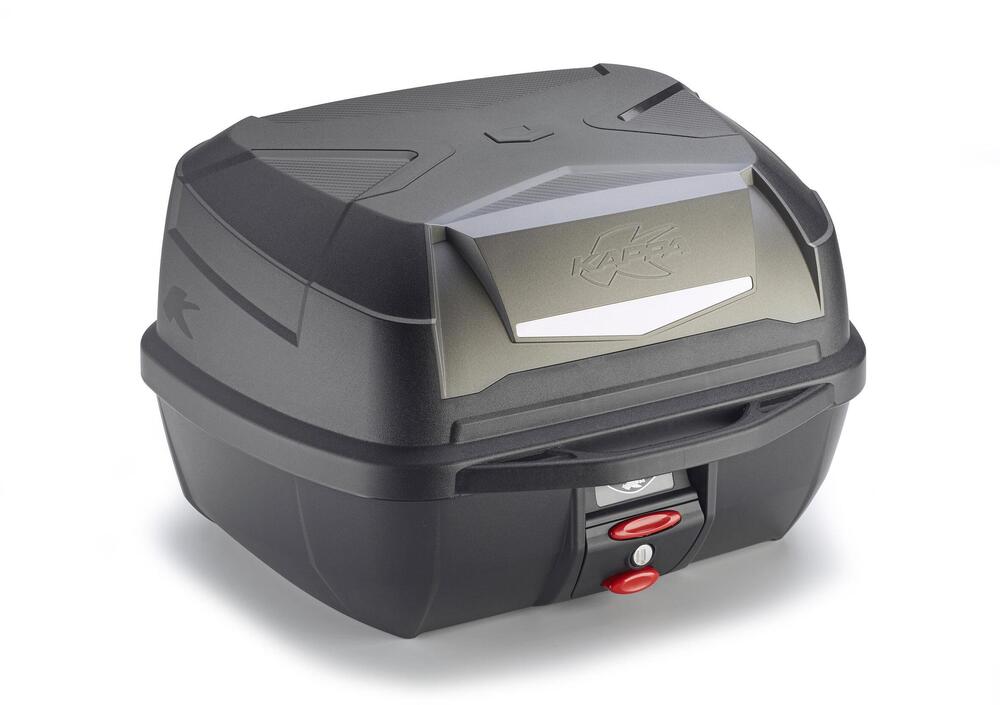 Capace di contenere comodamente un casco integrale o modulare, oltre ad altri utili oggetti e accessori di uso quotidiano, questo modello da 32 litri riesce a conciliare dimensioni piuttosto ridotte con un ampio spazio interno. Cattura l’attenzione l’inserto superiore verniciato in color argento satinato con il logo aziendale, che sostituisce i catadiottri e “spezza” il nero del fondo. Il coperchio è impreziosito da una texture effetto carbonio. Comodo il maniglione per il trasporto a mano. Da segnalare è anche la presenza del sistema “Micro 3”, che permette la chiusura del bauletto, senza l’uso della chiave, semplicemente esercitando una pressione sul coperchio.