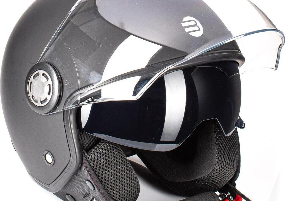 Un casco minimal, ma allo stesso tempo funzionale e dotato di doppia visiera: una chiara antigraffio lunga e un occhialino parasole a scomparsa. Completano le caratteristiche del prodotto gli interni in tessuto microfibra ipoallergenici, removibili e lavabili, l’anello in metallo per aggancio al veicolo e il sistema di chiusura micrometrico.